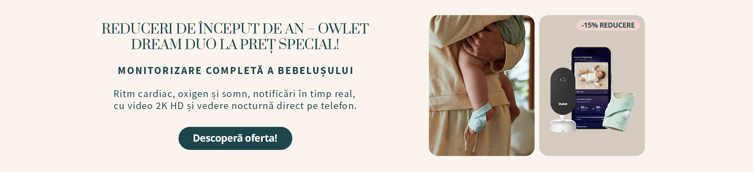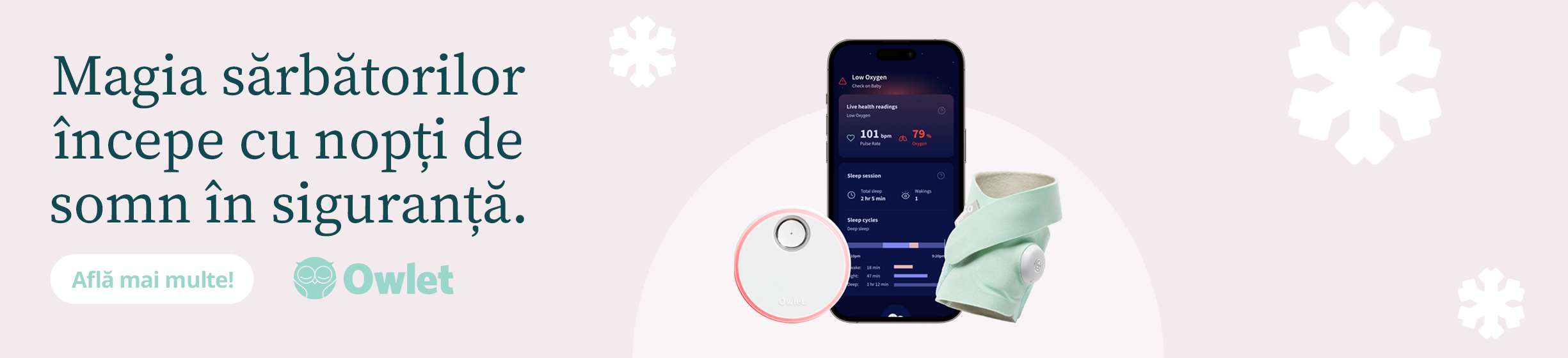 Cu Owlet Dream Sock, poți urmări ritmul cardiac, nivelul de oxigen din sânge și tendințele de somn ale copilului tău din prima noapte până în prima lui zi de școală. Poți vedea datele în timp real, cu ajutorul unei aplicații gratuite chiar pe telefon. Dacă ceva nu este în regulă, vei primi imediat o alertă deoarece copilul are nevoie de ajutor.