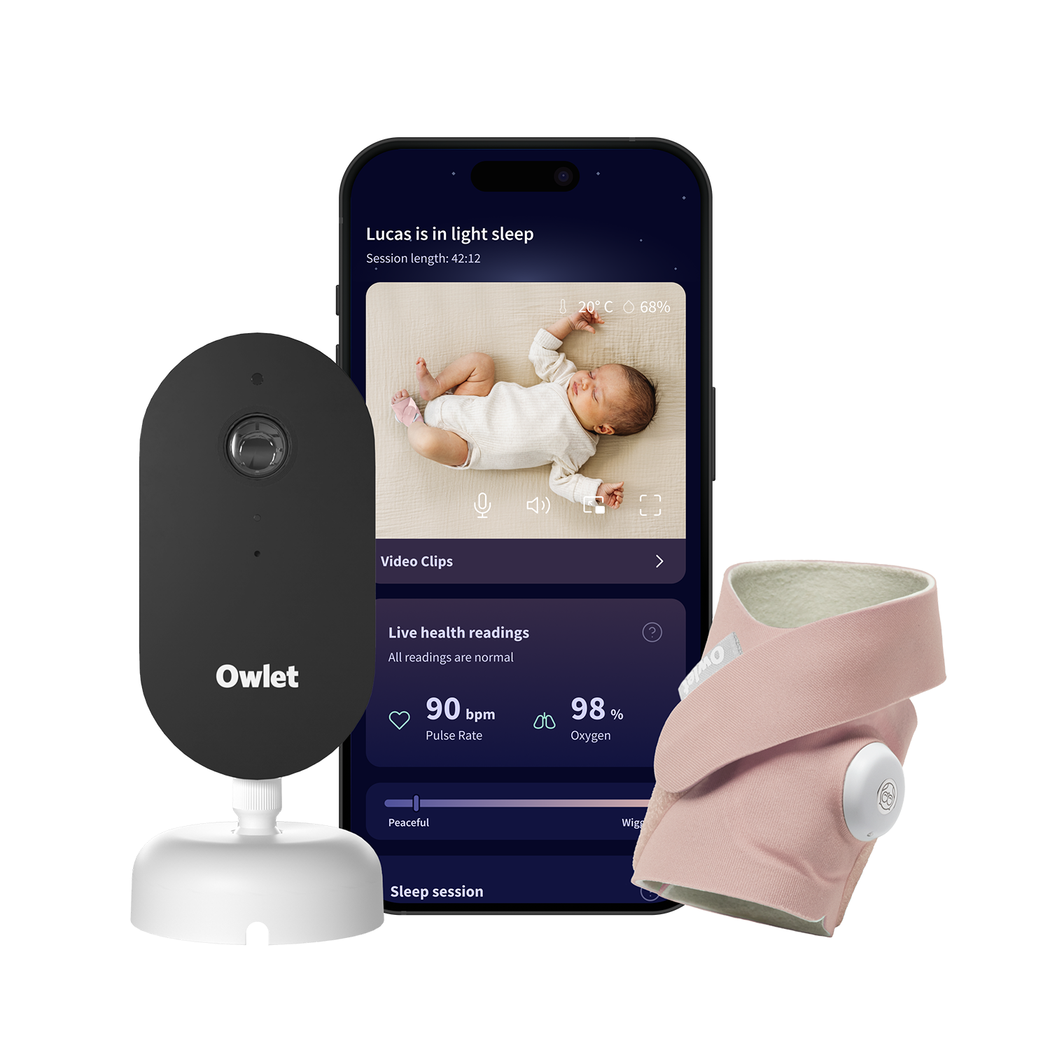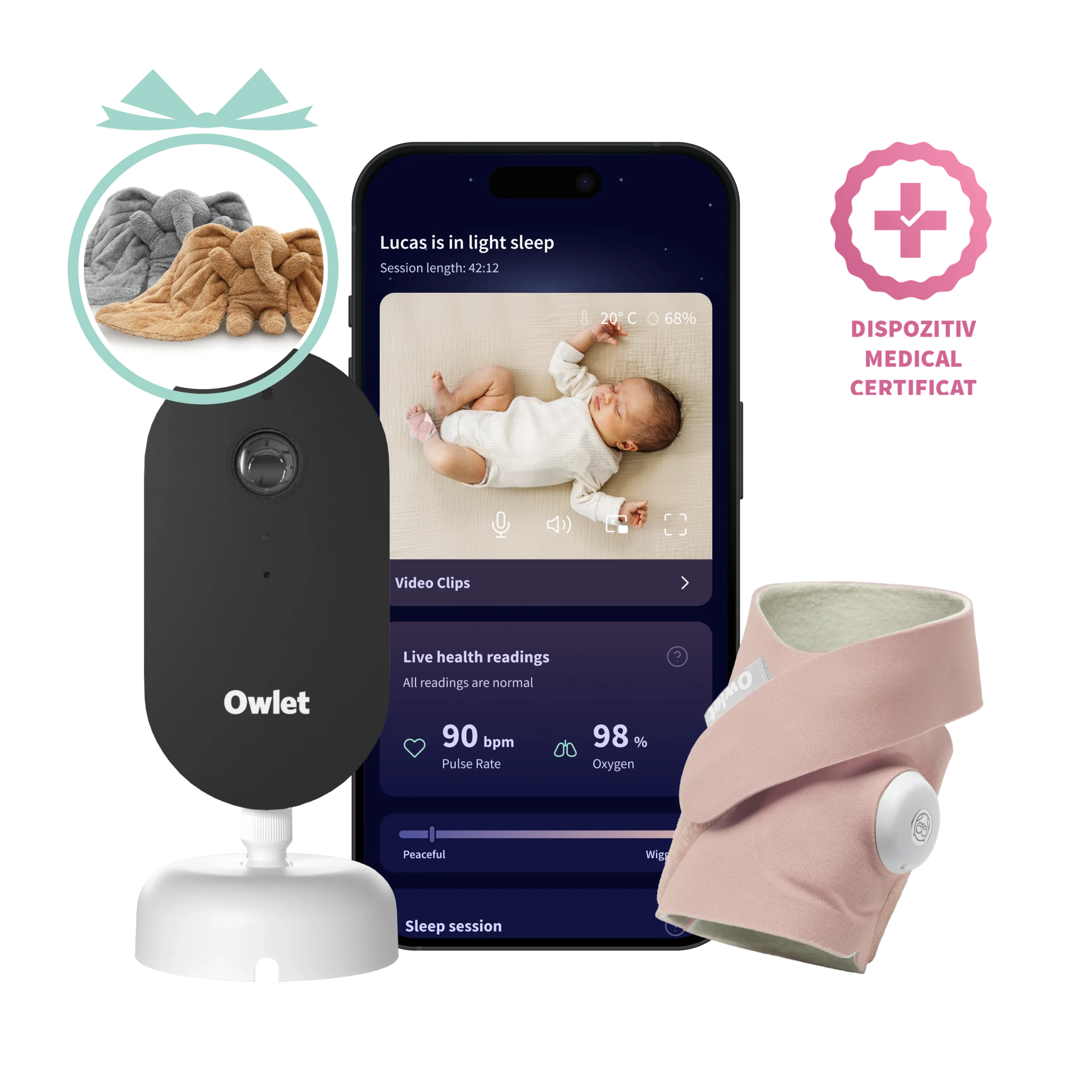 Owlet Dream Duo™ (a 3-a generație) este cel mai complet sistem de monitorizare a bebelușului de pe piață – combinând șoseta certificată medical Dream Sock®, camera inteligentă HD Dream Sight™ și aplicația Owlet Dream App într-o soluție unică și conectată
